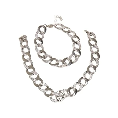 Urban Classics Basic Necklace AND Bracelet SET silvercoloured, Men's, Size: One Size, Silver coloured