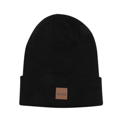 Urban Classics Leatherpatch LONG Beanie, Men's, Size: One Size, Black