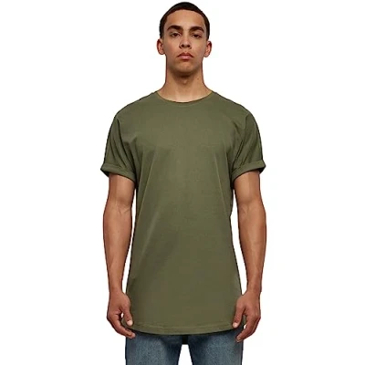 Urban Classics LONG Shaped Turnup Basic Tshirt, Men's, Size: Medium, Olive