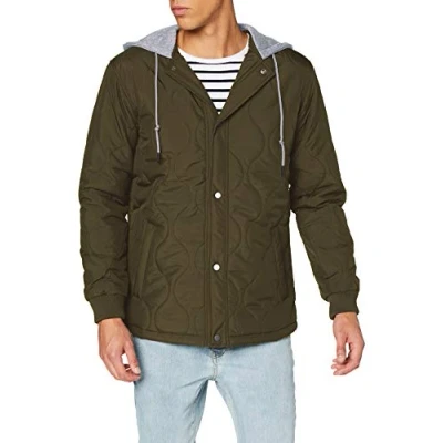 Urban Classics Men's Quilted Hooded Jacket, dark olive, S