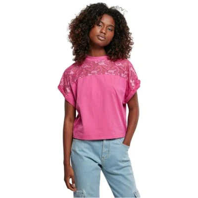 Oversize women's top with elegant lace in the upper part Stretch jersey and elastic lace Folded sleeve hems Oversized fit Easy and easy to combine with different outfits