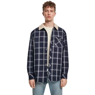 Urban Classics Sherpa Lined Shirt Jacket Light jacket, Men's, Size: Medium, Navy/white