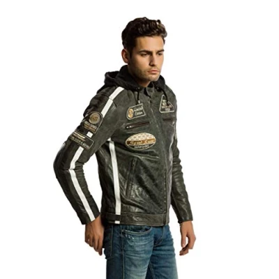 HIGHEST QUALITY: Our leather jackets are made from high-quality lambskin leather and guarantee protection and comfort under all circumstances. Each jacket handmade by us is unique and carefully crafted down to the smallest detail. Especially when it comes to designing the perfect leather jacket for men, we have been working as real professionals in the motorcycle clothing industry for years. FULLY REMOVABLE PROTECTIONS: The shoulder, elbow and back protectors of our motorcycle leather jacket are approved for maximum safety. Do you want to use your motorcycle jacket every day, maybe during a break from driving? For maximum comfort, all our protectors are removable! Thanks to a YKK zip, the hood is also removable. PERFECT FOR ALL SEASONS: Ride all year round in your motorcycle protector jacket. The lambskin makes the jacket warm for the winter season, but the thickness is also ideal for use in spring and summer. You will never have to part with her. 2 practical inner pockets: we never have enough space on our motorcycle... we all know that! Our biker leather jacket has 4 outer and 2 inner pockets to store your most valuable items completely safe and protected from the elements. Do you worry about the size? Would you like to buy our leather motorcycle jacket for men, but are unsure about the size? Check our size chart under the product images and find out which of our leather jackets suits you best.