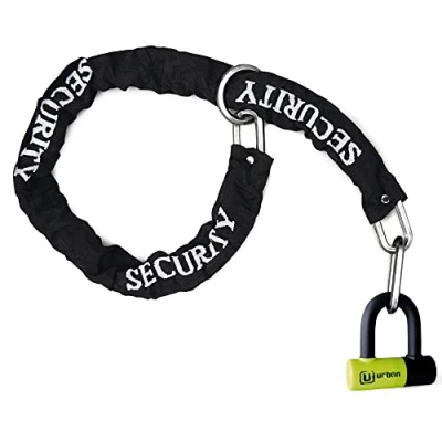 Urban UR59120 Mini U Lock with Chain Loop 120 cm/3.9ft, Dual Function Safer & Lighter for Motorcycle Disc Lock, High Security Double Locking, Universal Anti Theft Motorcycle, Scooter, Bicycle
