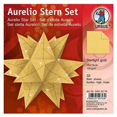 'Aurelio Star Light " Contains 33 blade 15 x 15 cm Colour: Matte gold Decorated with metallic effect on both sides, Manufacturer: Buntpapierfabrik Ludwig Bähr GmbH & Co. KG