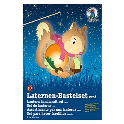 1x lantern stamped part, round, diameter 21.8 cm; 21.8 cm wide, 21 cm high, 10.3 cm deep 2x sheets tracing paper din A4, 4 sheets photo card 23 x 33 cm, 3 sheets photo card din A5, 1x sheet glitter paper 16.5 x 23 cm. 1 candlestick, 1 lantern carrying strap, 1 pre-bow with manual instruction., Manufacturer: Buntpapierfabrik Ludwig Bähr GmbH & Co. KG