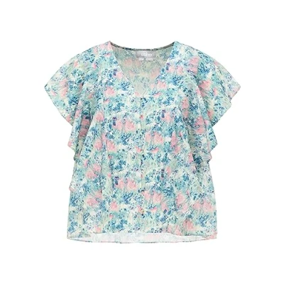 Summer blouse With V-neck and button placket Wide bat sleeves Floral all-over print Soft quality with a slight sheen