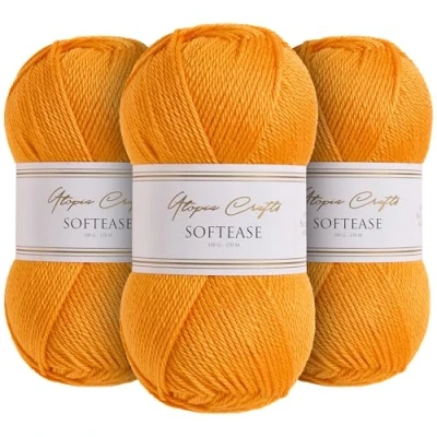Utopia Crafts Softease Knitting and Crochet Yarn 3X 100g (Golden Mango)