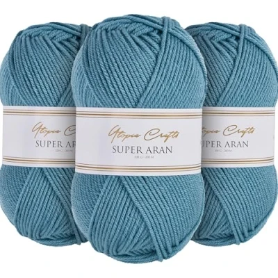 Utopia Crafts Super Aran Knitting and Crochet Yarn 3X 100g (Ocean Breeze)