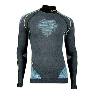 UYN Men's Evolutyon Uw Lg_sl.Turtle Neck Melange T Shirt, Anthracite Melange/Blue/Glossy Yellow, M