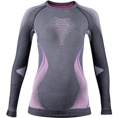 UYN Women's Evolutyon Uw Lg_sl.Melange T Shirt, Anthracite Melange/Raspberry/Purple, M