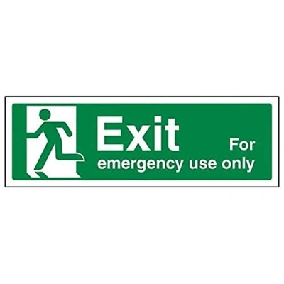Helps to fulfil legal obligations to inform of the direction in which safety can be reached as per Health and Safety (Safety Signs & Signals) Regulations 1996 Conforms to EN ISO 7010:2012 by featuring a green background with a white pictogram or text positioned centrally Landscape Orientation. Sign reads "Exit For Emergency Use Only" Highly durable Self Adhesive Vinyl material and screen printed message will stand the test of time Sign measures 300 x 100mm. Self Adhesive material will adhere securely to most surfaces