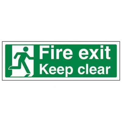 Helps to fulfil obligations to identify escape routes in a fire emergency for all members of staff and visitors as per Health and Safety (Safety Signs & Signals) Regulations 1996 Conforms to EN ISO 7010:2012 by featuring a green background with a white pictogram or text positioned centrally Landscape Orientation. Sign reads "Fire Exit Keep Clear" Highly durable and heavy duty 2mm rigid plastic material Sign measures 300 x 100mm