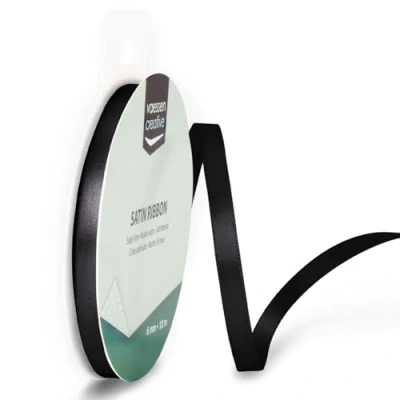 Vaessen Creative Satin Ribbon, 6 mm x 10 m, Black, Decorative Ribbons for Crafts, Fabric Wedding, Christening and Birthday Gifts