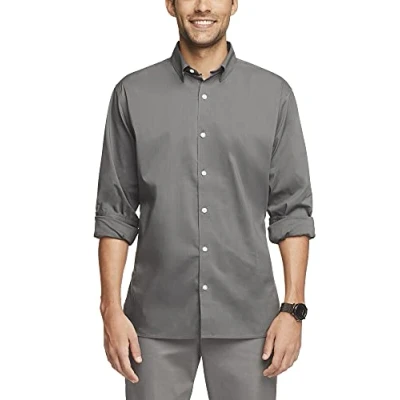 Van Heusen Men's Classic Fit Stain Shield Never Tuck Stretch Solid Button Down Shirt, Iron Gate Solid, M