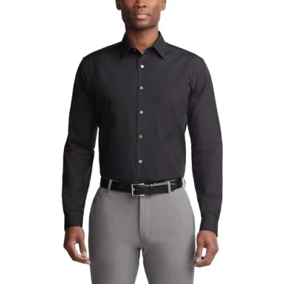 Van Heusen Men's Dress Shirt Regular Fit Poplin Solid, Black, 18 Neck / 36 37 Sleeve