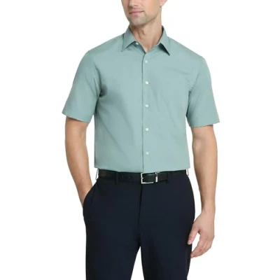 Van Heusen Men's Short Sleeve Dress Shirt Regular Fit Poplin Solid, Ocean Mist, 18" Neck