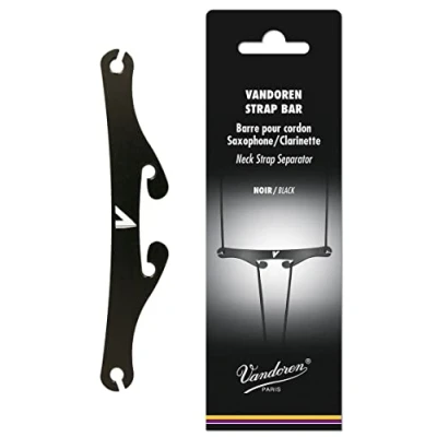 Separates the cords of the neck strap to eliminate tension in the neck and chest. Results in increased comfort and allows the musician to breath more freely and easily. The strap bar is designed to work in tandem with the Vandoren V Neck and V Neck Deluxe saxophone straps Works with other saxophone and clarinet straps utilizing a standard string or cord Available in black, gold, or red finish.