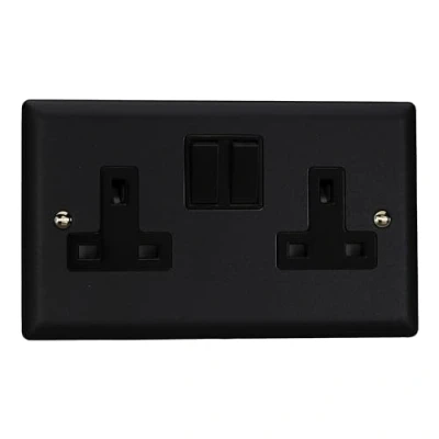 Varilight Urban Matt Black 2 Gang Double Pole Switched 13 Amp Plug Socket with Insert