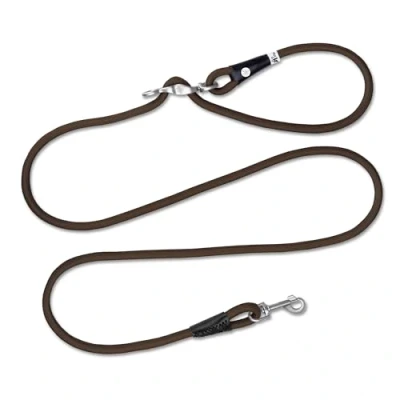 Infinitely adjustable dog lead: The Vario Comfort Leash from Curli is a 2 metre long dog lead that can be comfortably and continuously adjusted from a short city lead to a long lead with greater leeway thanks to the Vario-Lock buckle. Practical design: the Vario Lock buckle also has a clever twist mechanism that prevents the lead from twisting. A practical extra eyelet can be used as a waste bag holder or as an additional attachment eyelet. Shock-absorbing: The ultra-soft and shock-absorbing nylon rope made exclusively for Curli cushions jerky movements and thus provides stress-free and safe control of your dog while maintaining a comfortable grip. High quality: thanks to the snap-in carabiner, the Vario Comfort Leash from Curli can be easily and securely attached to almost any harness or collar. A hand-sewn rope guard rounds off the high-quality look of the lead. Box contents: Curli Vario Comfort Leash (shock-absorbing nylon rope, VARIO-LOCK-Buckle, twist mechanism, extra eyelet, snap-in safety carabiner) - Length: 2.0 m - Size: L - Colour: Brown