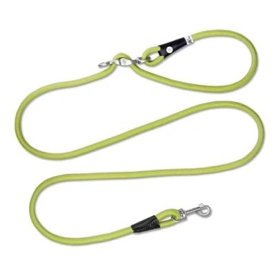 Infinitely adjustable dog lead: The Vario Comfort Leash from Curli is a 2 metre long dog lead that can be comfortably and continuously adjusted from a short city lead to a long lead with greater leeway thanks to the Vario-Lock buckle. Practical design: the Vario Lock buckle also has a clever twist mechanism that prevents the lead from twisting. A practical extra eyelet can be used as a waste bag holder or as an additional attachment eyelet. Shock-absorbing: The ultra-soft and shock-absorbing nylon rope made exclusively for Curli cushions jerky movements and thus provides stress-free and safe control of your dog while maintaining a comfortable grip. High quality: thanks to the snap-in carabiner, the Vario Comfort Leash from Curli can be easily and securely attached to almost any harness or collar. A hand-sewn rope guard rounds off the high-quality look of the lead. Box contents: Curli Vario Comfort Leash (shock-absorbing nylon rope, VARIO-LOCK-Buckle, twist mechanism, extra eyelet, snap-in safety carabiner) - Length: 2.0 m - Size: L - Colour: Lime