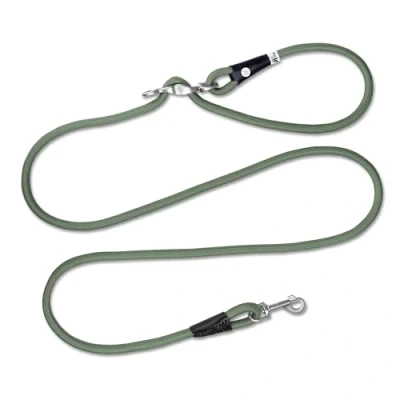Infinitely adjustable dog lead: The Vario Comfort Leash from Curli is a 2 metre long dog lead that can be comfortably and continuously adjusted from a short city lead to a long lead with greater leeway thanks to the Vario-Lock buckle. Practical design: the Vario Lock buckle also has a clever twist mechanism that prevents the lead from twisting. A practical extra eyelet can be used as a waste bag holder or as an additional attachment eyelet. Shock-absorbing: The ultra-soft and shock-absorbing nylon rope made exclusively for Curli cushions jerky movements and thus provides stress-free and safe control of your dog while maintaining a comfortable grip. High quality: thanks to the snap-in carabiner, the Vario Comfort Leash from Curli can be easily and securely attached to almost any harness or collar. A hand-sewn rope guard rounds off the high-quality look of the lead. Box contents: Curli Vario Comfort Leash (shock-absorbing nylon rope, VARIO-LOCK-Buckle, twist mechanism, extra eyelet, snap-in safety carabiner) - Length: 2.0 m - Size: S - Colour: Moss
