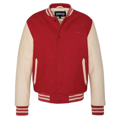 VARSITY RIB NECK LEATHER/WOOL SCHOTT LC8705 RED/BEIGE