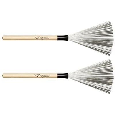 Non-retractable wire brush 5A sized wooden grip Features a metal rivet at butt end for cymbal scrapes