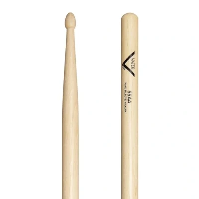Made in the USA from high grade American hickory, Vater Drumsticks are made the same as they've always been, resulting in a consistent and durable drumstick: Hands-on craftsmanship, higher moisture content in the raw material, lathe turned, tumble finished and hand rolled. All Vater Drumsticks are tone and weight matched by computer analysis. The Vater American Hickory 55AA offers just a little extra reach for the 5A player without adding a much weight or compromising the natural feel of the drumstick. Wood Type: Hickory | Taper: Medium Tip: Wood | Tip Shape: Acorn Stick Diameter: 0.570" | 1.45cm Stick Length: 16" | 40.64cm