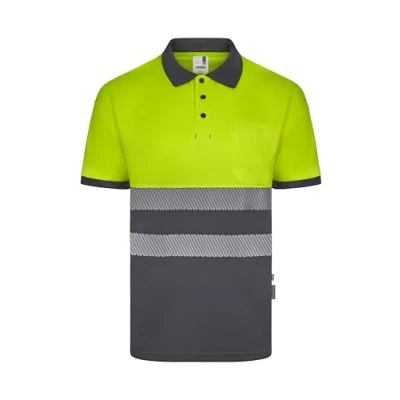 VELILLA 305533; Recycled Polyester Polo Bicolor Short Sleeve Segmented Tape; Colour Grey and Fluo Yellow; Size S, Fluorescent Yellow, S