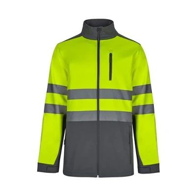 VELILLA 306006, Soft Shell Bicolour Jacket, Grey and Fluorescent Yellow, XL