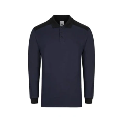 VELILLA Long Sleeve Two Tone Stretch Polo, Navy Blue and Black, L