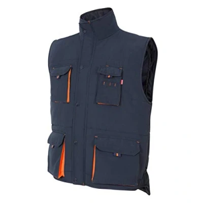 VELILLA Men's 205902 Quilted Vest with Multiple Pockets, Navy and Orange, Size L, L