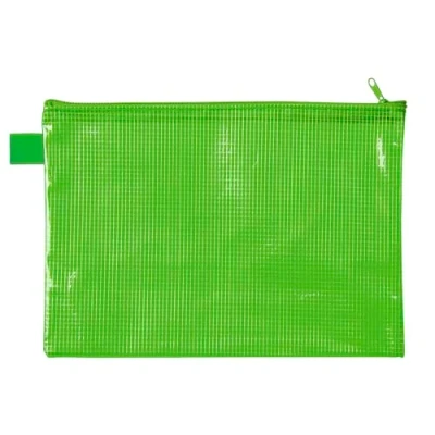 The storage bag has the format DIN A5 (235 x 180 mm) and has a practical loop The bag with zip has a thickness of 260 µm and is made from a fabric-reinforced EVA material (PVC-free) The document folder can also be used in wet areas thanks to the water-repellent material It is in green and is suitable for cosmetics, pens, charging cables, etc. The zip pocket is ideal for everyday use, but also a practical companion for travel and on the go