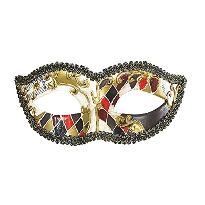 Are you looking for a mask to match your carnival outfit Then this item by Widmann is just the thing for you. . This mask is in a colourful check pattern and decorated with notes. It is surrounded with a black tip. . The accessory only covers the eyes, so you can eat and drink without any problems. . No make-up is necessary. Simply put on the mask and you are ready to conquer the party. other beautiful costumes and accessories can be found in our brand shop. Click on the brand name Widmann below the product title, Manufacturer: Widmann