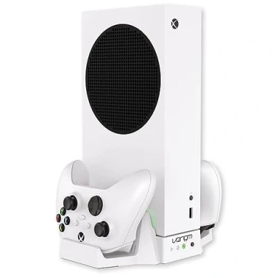 Vertical stand for Xbox Series S with integrated controller charging and twin cooling fans Includes 2 x rechargeable battery packs for drop and go functionality compatible with all official Xbox controllers Twin fans prevent console from overheating Powered by USB Features USB charge indicator, Platforms: Xbox Series S