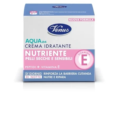 Contents: Aqua 24 Nourishing Moisturising Cream from Venus is designed for dry and sensitive skin, offering a continuous moisturizing and nourishing action. Enriched with 1000mg of Vitamin E, it protects the skin from free radicals and strengthens the skin barrier. Features: Vitamin E is a powerful antioxidant that protects the skin from drying out. In combination with peptides, the day cream protects and strengthens the skin barrier, at night combats damage caused by free radicals How to use: Apply the cream morning and evening to face and neck with light massage until absorbed. The rich formula absorbs quickly without greasy thanks to Vitamin E. Also use as a nourishing compress for an extraordinary beauty effect Benefits: Aqua 24 Nourishing Moisturizing Cream provides intense hydration, improving skin elasticity and softness. Vitamin E and Peptides protect and regenerate, preventing moisture loss and improving overall appearance. Brand Story: Venus, an Italian beauty brand with over 100 years of history, is committed to combining scientific research and high quality ingredients to offer innovative products that enhance the beauty of all women.