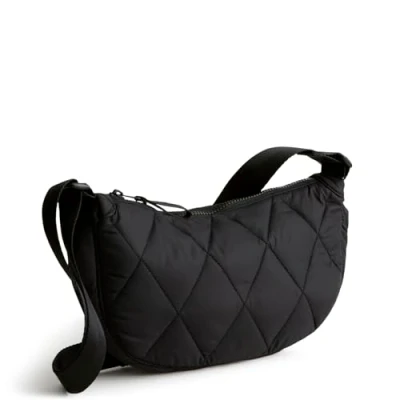 Measures 7 inches tall, 12 inches wide and 1 inches deep; features a 52 inch adjustable strap FEATHER WEIGHT: Experience the ultimate blend of softness and performance with super light, diamond quilted styles; Made from 100% recycled feather, this lightweight fabric is perfect for life on the go Details: Interior with a zip pocket; Zip closure Care: Wipe stains with a mild detergent and a soft, damp cloth, rinse thoroughly; lay flat to dry