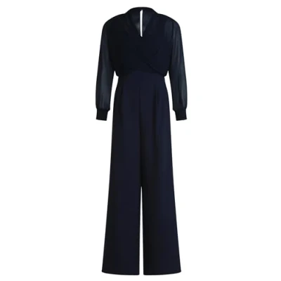 The women's jumpsuit impresses with its elegant wrap design, which guarantees a flattering fit. The fit of the jumpsuit is figure-hugging and emphasises the female silhouette in a tasteful way. Made from a fine material mix of chiffon and crepe, the jumpsuit offers a comfortable feel and an elegant look. With long sleeves and an attractive V-neck, the jumpsuit is perfect for both elegant occasions and everyday wear. The jumpsuit is designed with a stand-up collar, seam pockets and a zip with button sling at the back, giving it a touch of sophistication.