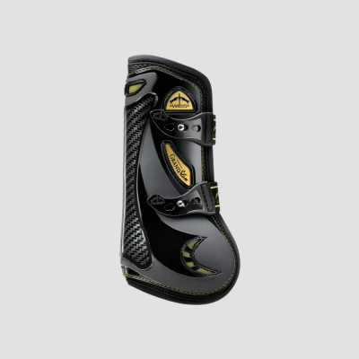 Gold edition front tendon boots This exclusive protection is dedicated to the Veredus riders who have won the tournaments of the Grand Slam of Showjumping: high-tech features and innovation enhanced by gold-plated details, in genuine celebratory style. The Grand Slam circuit brings together the most prestigious showjumping competitions in the world: Aachen, Calgary, Geneva and 's-Hertogenbosh. The rider who manages to win more than one tournament consecutively wins a bonus never seen in the history of show jumping. This protection is the tribute that Veredus dedicates to the riders who participate and win in this top-level competition Double ventilation Aerox microperforated neoprene 3D mesh ducted fabric Tendon protection in carbon + Nitrexgel Elastic straps with quick release tips Anatomic shell
