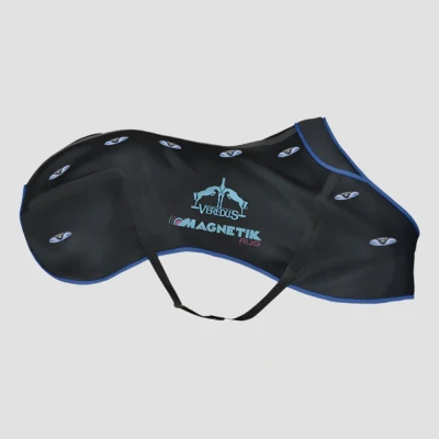 Rug for magnetotherapy Made of micro-perforated breathable material, Magnetik Rug is equipped with 32 neodymium magnets that develop a power of 2400 Gauss each. The magnets are distributed the magnets are distributed in correspondance of the great dorsal, in the lumbar region and on the shoulders. Magnetik Rug has been designed to be used alone or under any winter rug. Ideal to prepare the horse before training or competition and to accelerate the recovery processes after the effort, used by the greatest champions. Non-invasive and non-doping device. Helps the horse relax and contributes to his serenity Ideal during transport Reduces pain and swelling Stimulates blood circulation in the back Accelerates toxin elimination Accelerates regenerative processes