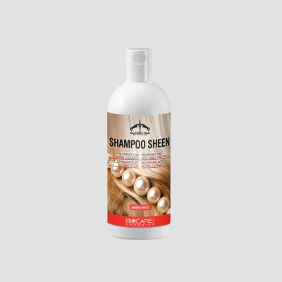 Nourishing and silky tangle free finish SHAMPOO SHEEN degreases, cleans and nourishes coats of all colours. The special formula with "sheen effect” makes the coat and horsehair soft, bright and shiny. Use together with SUPER SHEEN for maximum benefit. Directions for use: Wet the coat, apply the shampoo on several areas with a soft sponge, paying attention to the horse's eyes, massage and then rinse. For the tail, dilute Sheen Shampoo in a bucket with warm water, soak the tail for a few moments, then massage in and finally rinse thoroughly.