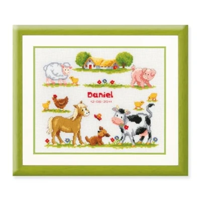Vervaco Birth Record Zoo Animals Counted Cross Stitch Kit, Multi Colour
