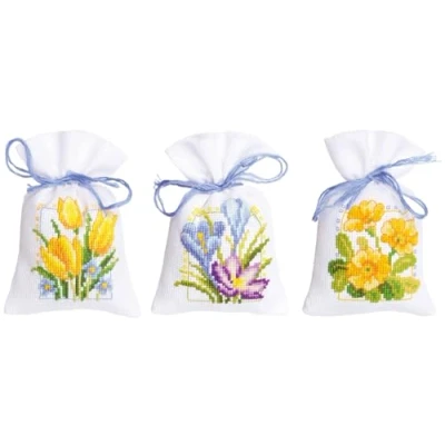 Set of 3 bags 18 count white aida 100% cotton - 7 stitches/cm 100% cotton yarn Finished size: 8 x 12cm, 3.2 x 4.8in., Weight: 0.0551155655 pounds, Manufacturer: Vervaco