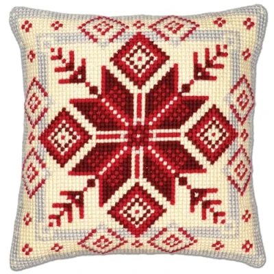 Handpainted, large hole canvas 18 holes/10cm, 4.5 stitches/inch Thick yarn: 100% acrylic Finished size approximately: 40 x 40cm or 16 x 16in Needle and fully illustrated instructions