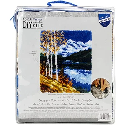 Kit includes: hand painted large hole mono canvas: 52% cotton, 48% polyester, 18 holes/10cm - 4,5 stitches/inch; 100% acrylic yarn in cut packs; front sheet picture; latch hook with binding tape for finishing. Approximate finished size: 44 x 55cm or 17.6 x 22in. Age category: from 7 years. Stitches: latch hook., Manufacturer: Vervaco
