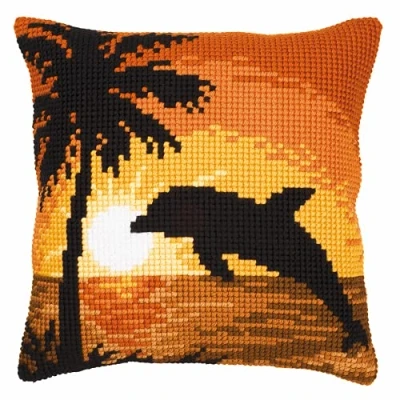Vervaco Sunset Dolphin Cross Stitch Cushion, Multi Colour