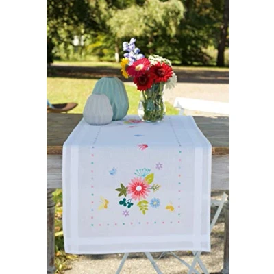 Printed cross stitch design worked on 11 count, white, 100% cotton Aida. Threads: pre-sorted and 100% cotton. Approximate finished size: 40 x 100cm or 16 x 40in. Age category: from 18 years. Stitches: satin stitch, stem stitch, back stitch, Manufacturer: Vervaco