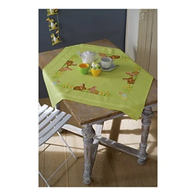 Vervaco Tablecloth: Easter Bunnies, Polyester Cotton, Assorted, 40 x 2 20 cm