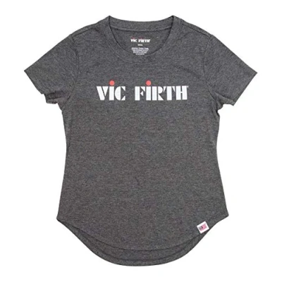 Vic Firth women's charcoal grey T-Shirt made from high quality, super soft tri-blend fabric (cotton/polyester/rayon) Features the classic Vic Firth logo on the front with the VF logo on the back Woven loop VF flag tag logo on bottom hem The T-Shirt has a crew neck, scooped bottom hem and is a relaxed fit Available in a range of sizes - see graphic image for size chart